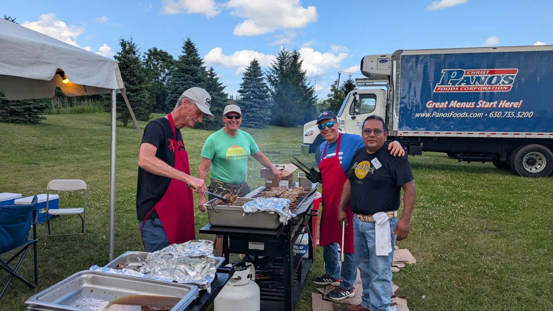Chapter 94 visited the center and grilled up 400 souvlaki for the youth that were present. It was a beautiful day for a cookout for the youth and the members grilling up the food.