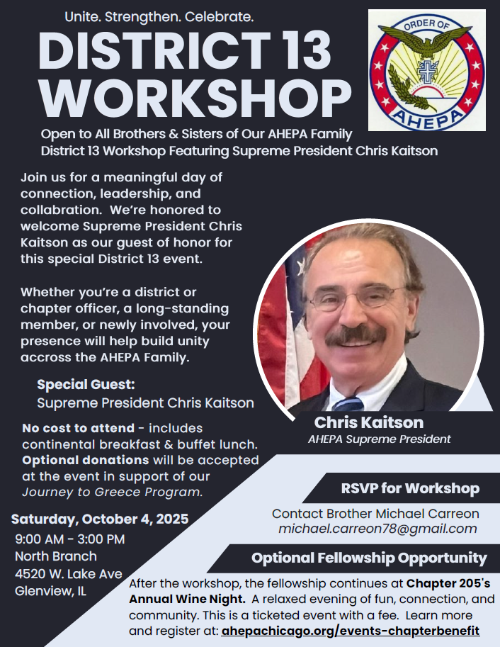 Let’s celebrate that District 13 continues to have presence at the National level for AHEPA, Maids of Athena, and Sons of Pericles.
