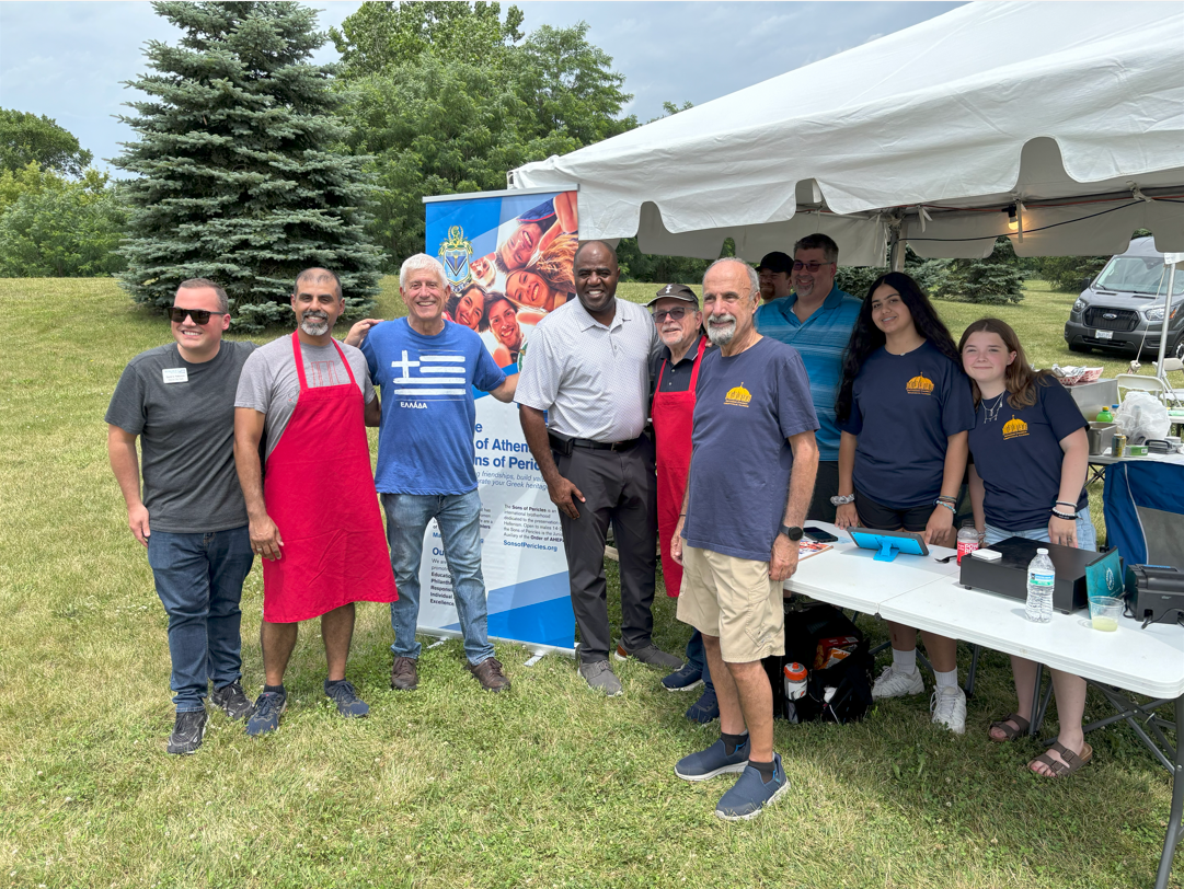 AHEPA Chapter #218 ( Little Fort) and MOA Chapter #40 (JACMA) volunteered to run the souvlaki and saganaki tents at this year’s St. Demetrios Greek Church (Libertyville) Lake County Fest. We endured the heat and storms throughout the weekend. It was a lot of hard work but we had a great time doing it. We cooked over 3,500 souvlaki and 400 saganaki! We thank all the AHEPAN members that came by to say hello during their visit to the church fest. Major Sam Cunningham from Waukegan stopped by to say hello as well.